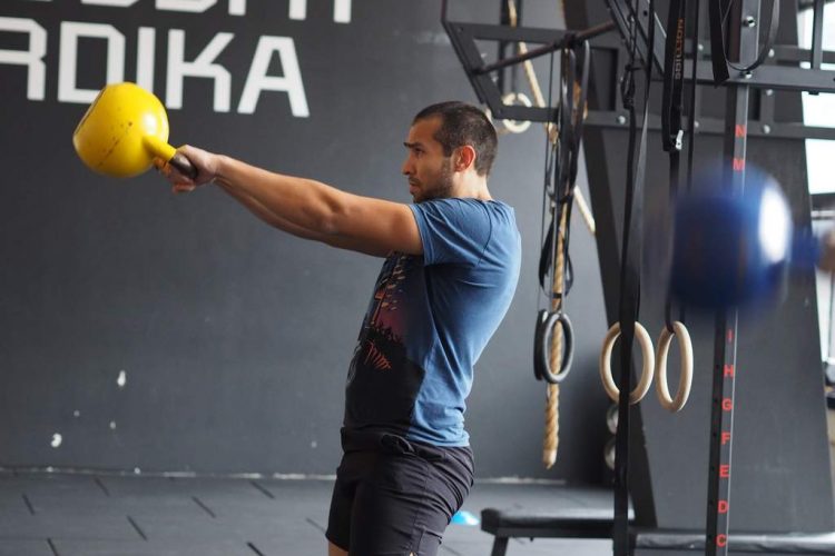 30 sec. DB Power Cleans (22.5/15 kg.) 30 sec. Rest 30 sec. Alternated-grip DB Hold * One DB on the shoulder, one by side 30 sec. Rest 8 rounds Straight into: 400-m Alternated-grip Carry * One DB on the shoulder, one by side